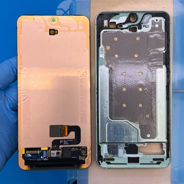 И достаём новый сервисный оригинальный дисплей Samsung S25 Edge в новой раме для замены. Официалы этого почему то сделать не могут)