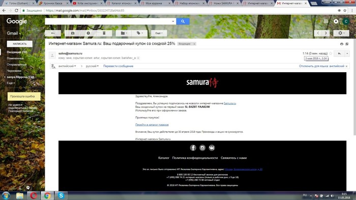 Через денек также по почте, у меня спросили, где ты это купил. Я ответил: У ВАС НА САЙТЕ!