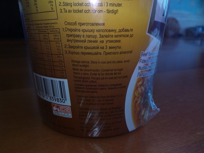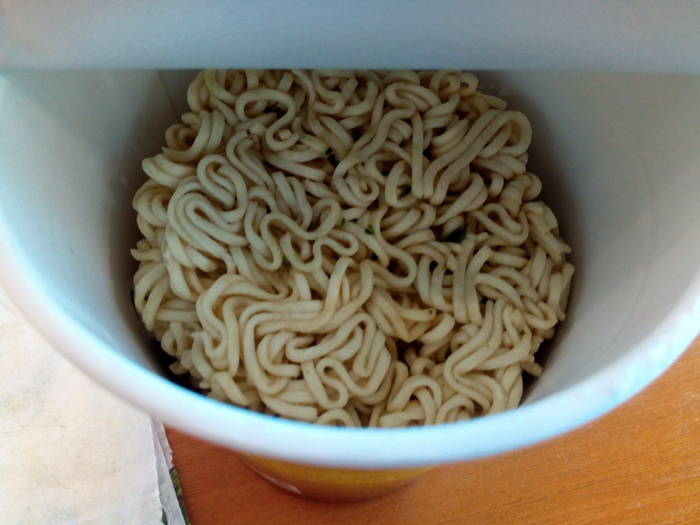 Итог: лапша была заварена в качестве быстрого завтрака, однако насытиться данной лапшой мне не удалось. Если, конечно, в неё накрошить лука, добавить пару кусков мяса, соли и перца (как красиво нарисовано на упаковке), думаю, и можно будет утолить голод. Однако сама по себе лапша не имеет ни остроты, ни вкуса.