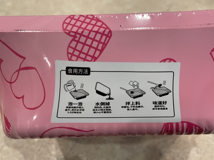 Внутри нас встречают палочки для лапши, сама лапша, соус и топпинг.