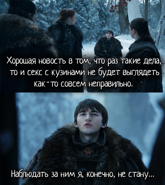 565 NMPro Лига Престолов Конечно, не станет 6 лет назад Показать полностью 2 Игра престолов Игра престолов 8 сезон Спойлер Джон Сноу Бран Старк Санса Старк Арья Старк Длиннопост