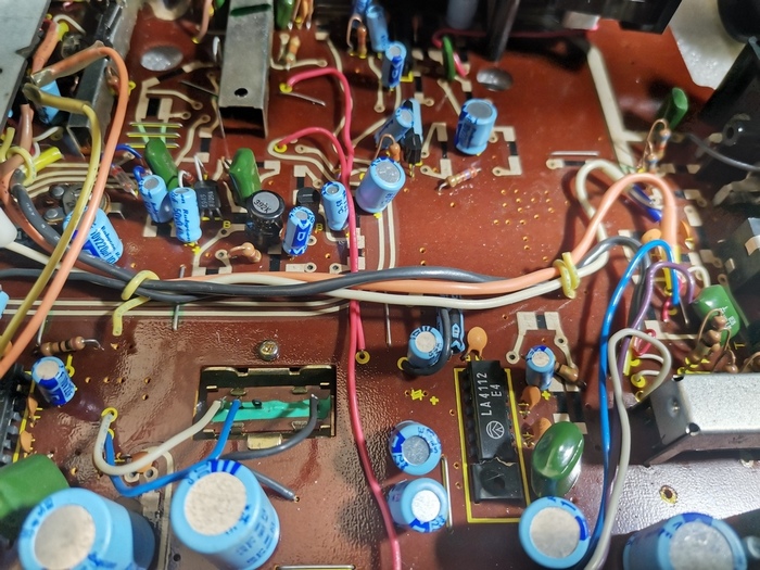 Включил- тюнер работает, ЛПМ по традиции мёртв. Стрелочные индикаторы зависли. С мыслью "Ну щас я его по быстрому!" открыл…и понял- не сейчас. И по проще аппараты имеются.