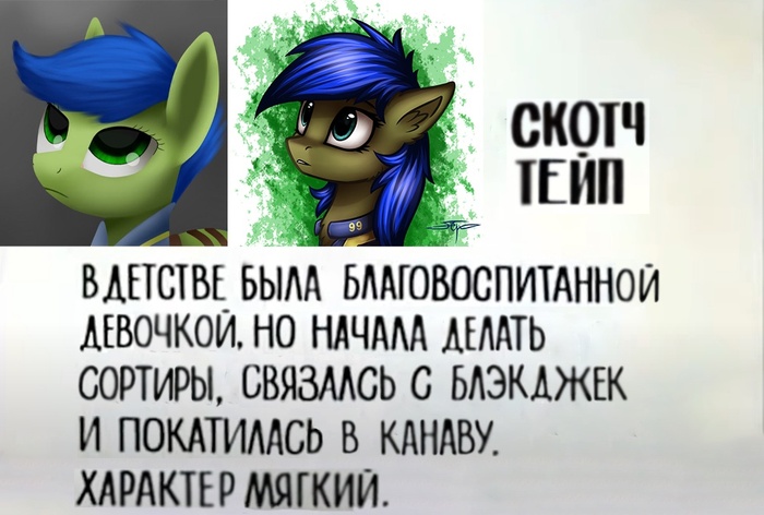 Слева на права: Скотч Тейп, зебры Пифия и Маджина, драконокобылка Прелесть, Черити, и грифон Скайлорд. Черити пришлось присоединится к партии не по своей воле и немного позже.
