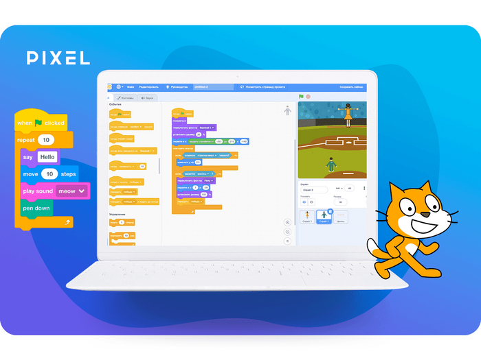 Мы, школа программирования для детей «Пиксель», уже много лет используем платформу Scratch для обучения детей программированию в наших летних лагерях и на онлайн-курсах.