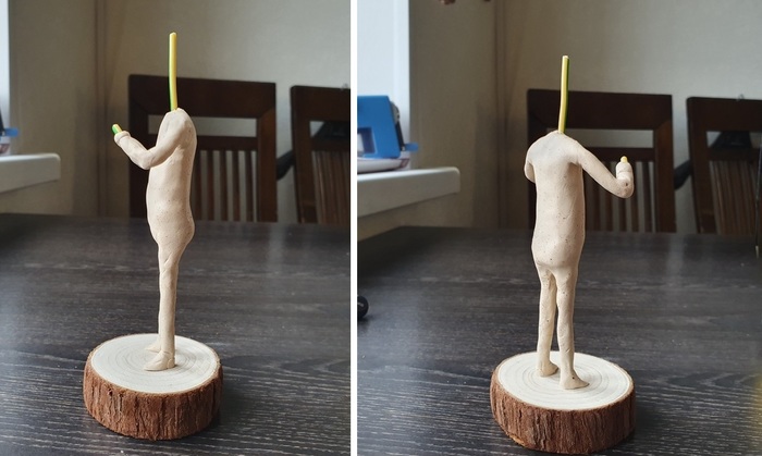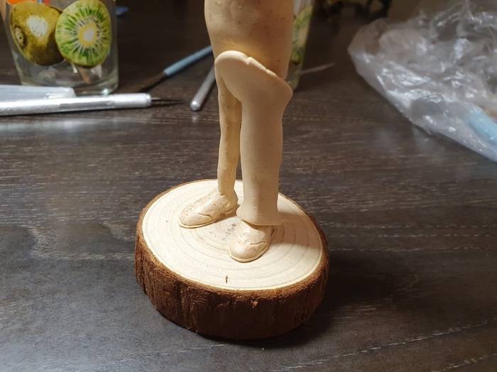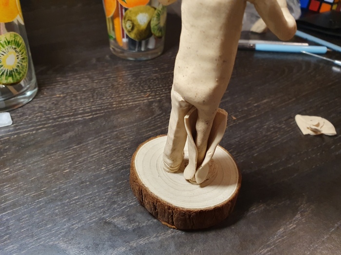 Для разглаживания поверхности(что бы не оставлять отпечатков пальцев) использую рукоять кисточки. Как скалкой катаю прямо по фигурке.