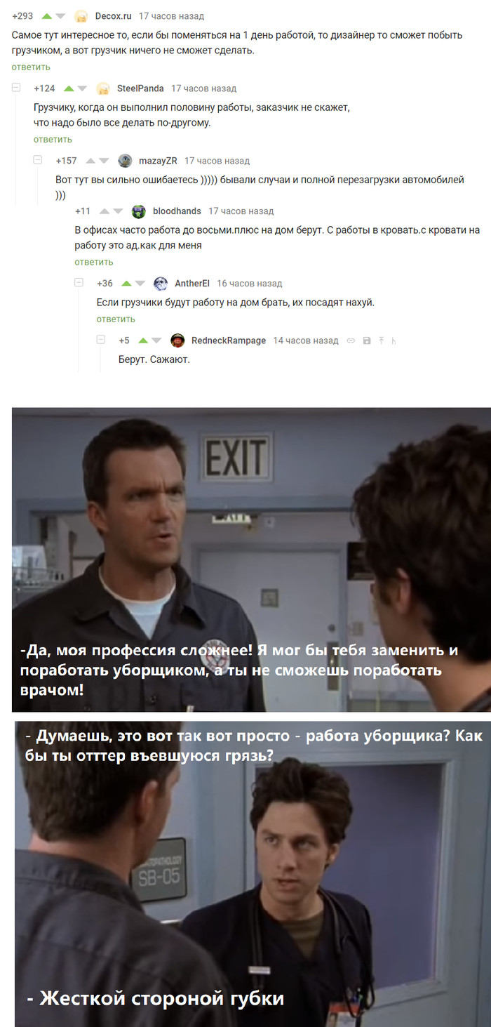 Комментарии на Пикабу Профессия Грузчики Сериал Клиника