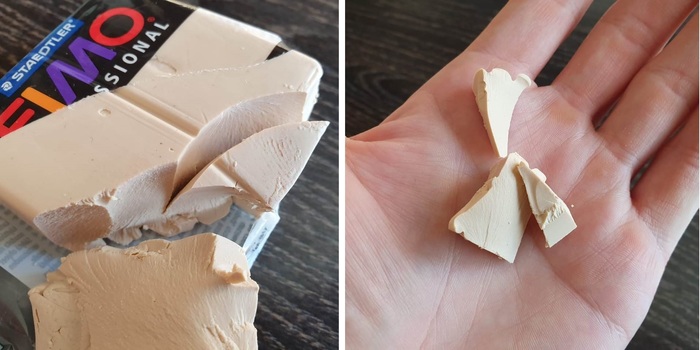 С первого раза, раздобыть качественную глину не удалось. Купленный мной экземпляр крошился, сыпался и совершенно не разминался в однородную массу. Посмотрев на дату производсива, выяснил, что она была изготовлена в 2014г. По идее, запечатанная глина не имеет срока годности, а по факту с ней произошла джигурда.