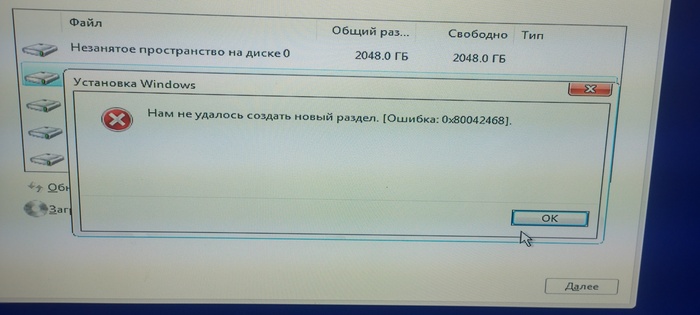 При создании нового раздела на 2609.5Гб вылезает ошибка.