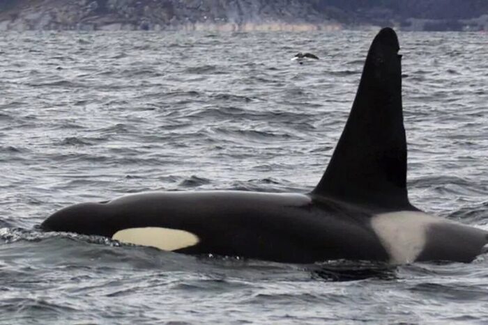 Здоровый плавник самца косатки в дикой природе