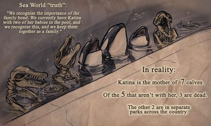 В общем, косатки в бассейне - это реально хреново. Не покупайте билеты. Не ходите туда. Шоу продолжается, потому что люди смотрят, смеются и кричат: "Or-ca! Or-ca!".