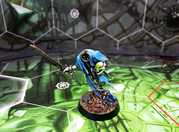 «The Sepulchral Warden». Очень крутая минька. Красить ее было одно удовольствие. Только вот нужно работать над тонкими линиями. Цель покраски была попробовать повторить видеогайд от GW.