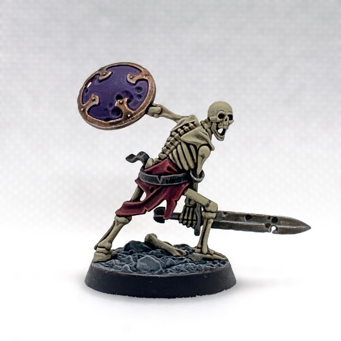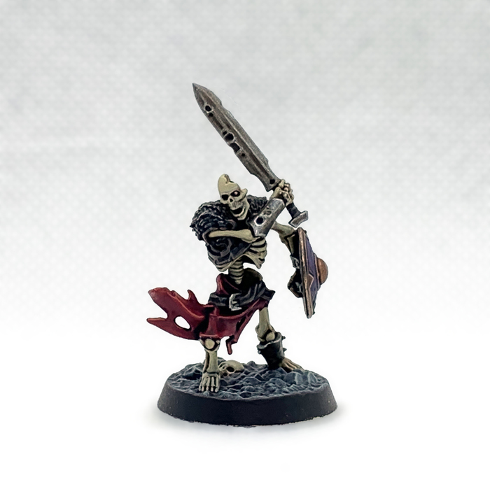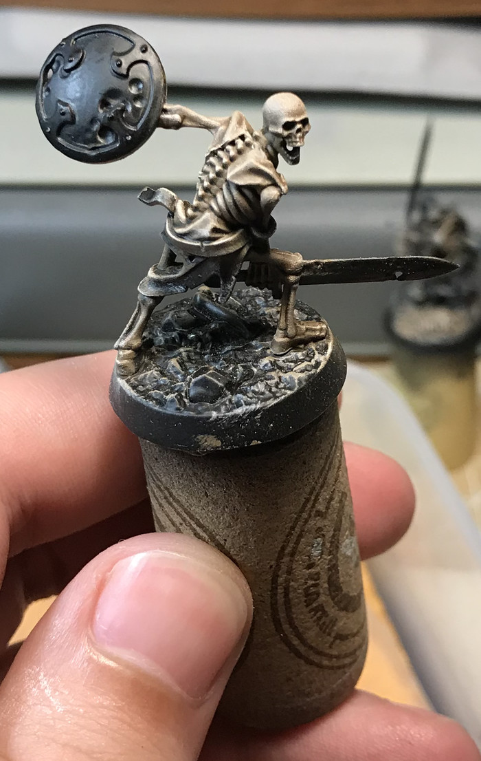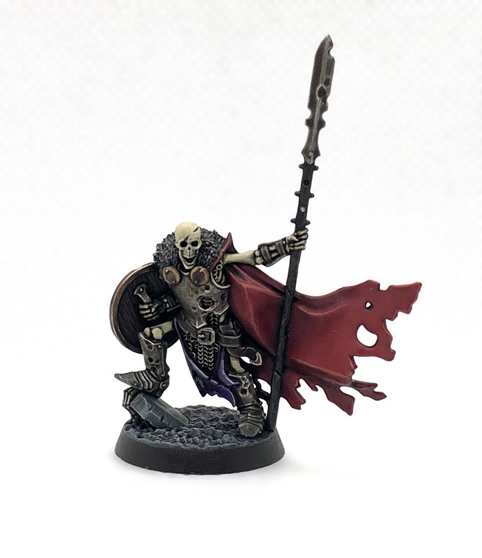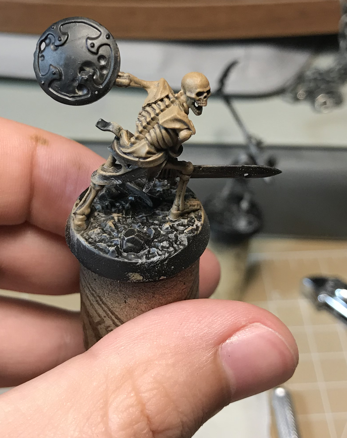 «The Champion». Последние миньки от GW супер детализированы, и многие элементы получаются очень тонкие. У этого скелета ну просто очень тонкий меч. Можно очень легко его сломать.