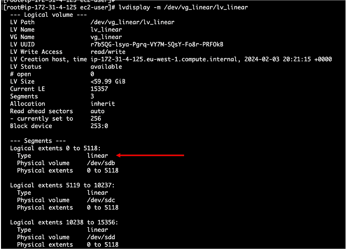 # lvdisplay -m /dev/vg_linear/lv_linear
