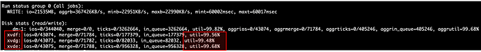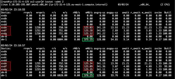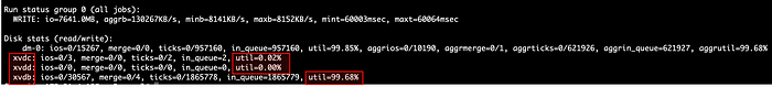 Видим, что используется только один диск xvdb со скоростью 125 МБ/с.
