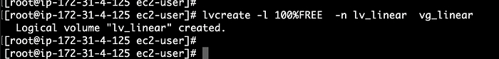 # lvcreate -l 100%FREE -n lv_linear vg_linear