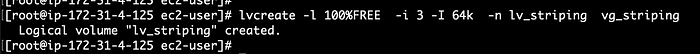 # lvcreate -l 100%FREE -i 3 -I 64k -n lv_striping vg_striping