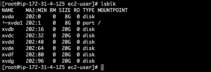 EBS-диски: 6 штук по 20ГБ (тип GP3, 3000 IOPS, 125MiB/s пропускная способность каждый)