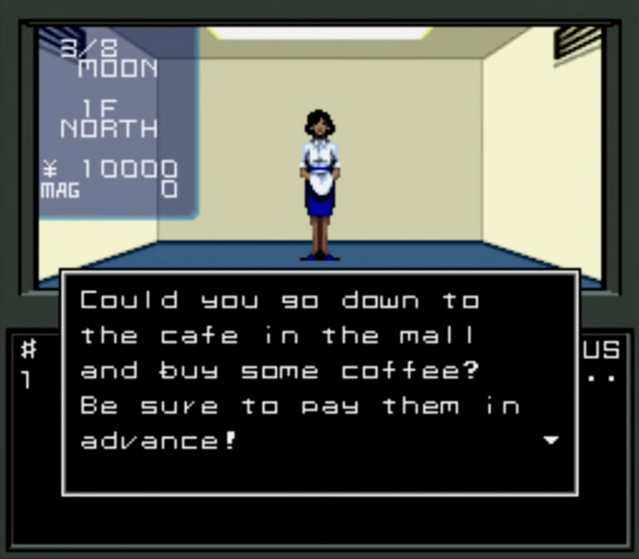 Вам нравится или не знаком жанр данжн кроулеров. Одной из самых аддиктивных черт геймплея SMT I, II, if является клеточная разметка карты. Она очень удачно позволяет вам колесить по карте, планировку которой в Atlus заказали у пьяных практикантов местного строительного ПТУ. Адское расположение дверей и перегородок, от которого вы кайфанете, желая зачистить всю карту. SMT I можно вполне рекомендовать как входную точку в поджанр кроулеров, в который Atlus внесла свою веху. Клеточки карты порадуют вас и в Etrian Odyssey, и в SMT: Strange Journey (самая сложная игра в серии), и в кроссовере Persona Q-Q2 для фанатов одноименной серии