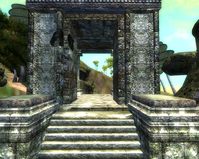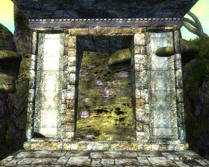 Похоже на входную арку, замурованную каким-то валуном. Но сзади ничего, кроме этого самого валуна, нет. Однако если сунуться в камень в режиме tcl, обнаружиться, что это никакой не вход, а просто арка, причем вовсе не замурованная. Впрочем, как только мы пройдем через нее, она тут же снова замуруется.