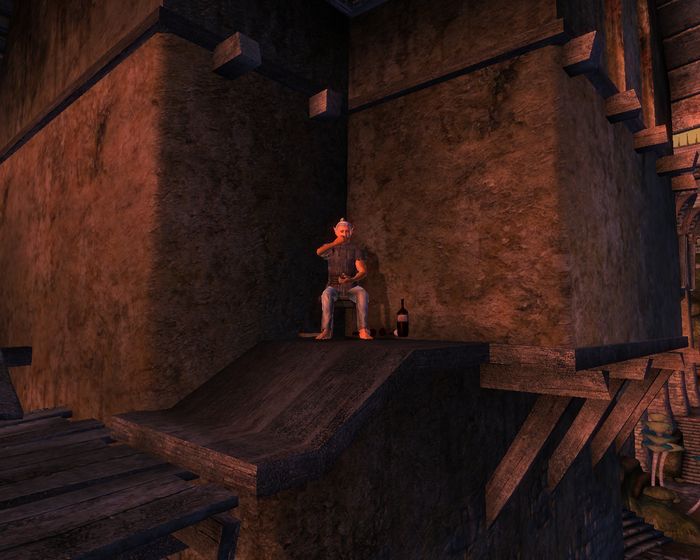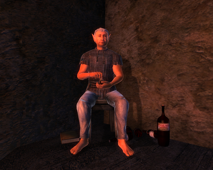 Нищий обитатель Блисса, вечно голодный босмер, занятый постоянными поисками еды. Имеет на своем организме Успокаивающие штаны, зачарованные на +8 к Обаянию, кои, штаны, могут понадобиться по квесту. Грядущий шторм.