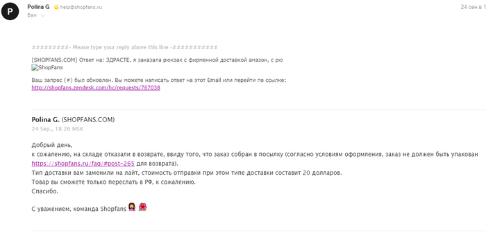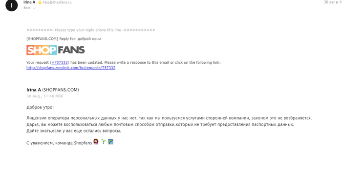 Ни товара, ни денег! Спасибо SHOPFANS!