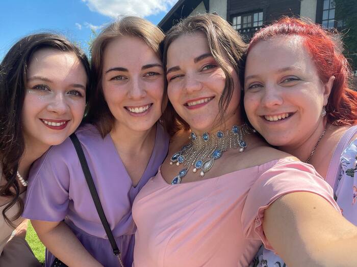 Друзья в моей жизни занимают немаловажное место. Мои подруги поддерживают меня в моих начинаниях: ходят ко мне на концерты, подарили первый велосипед, любят моё творчество и восхищаются моими вышивками.
