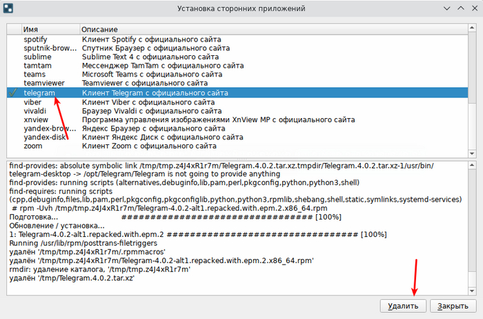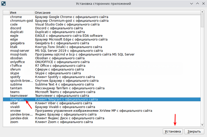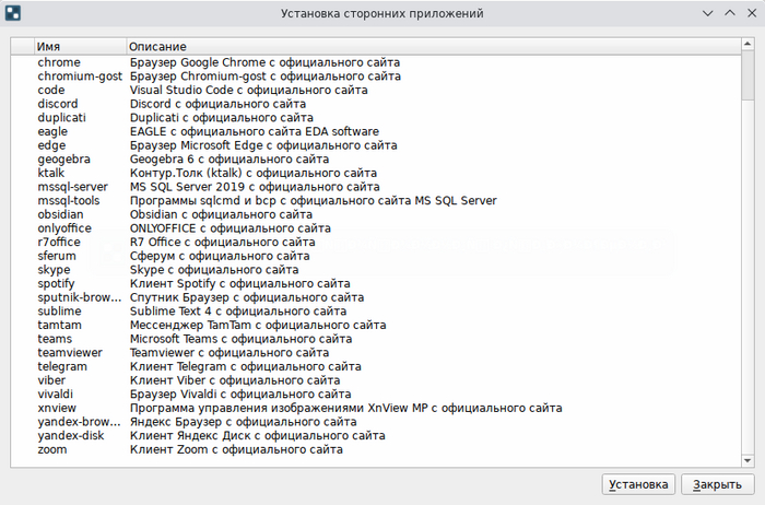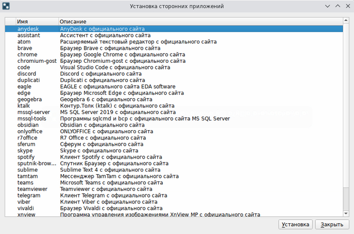 Помимо этого, есть отдельная утилита, позволяющая установить стороннее ПО, такое как Telegram, Viber, TeamViewer или AnyDesk. Такого ПО нет в репозиториях, но оно востребовано пользователями, так что ставим Simply еще один плюс.