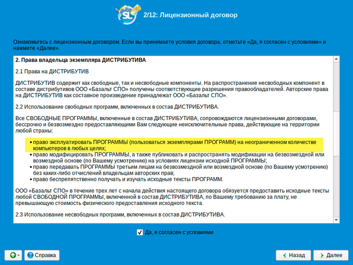 Лицензионное соглашение, которое никто не читает, но в этот раз его все-таки стоит прочитать, хотя бы для того, чтобы в дальнейшем не было вопросов об ограничениях в применении Simply Linux.