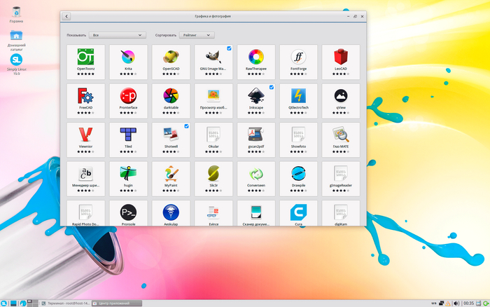 Позволим себе немного перефразировать известную фразу из популярного фильма: Simply Linux - система контрастов. С одной стороны есть сильные дизайнерские ходы, показывающие желание работать над графическим оформлением системы, с другой - дубовый XFCE из коробки с иконками допотопной давности.
