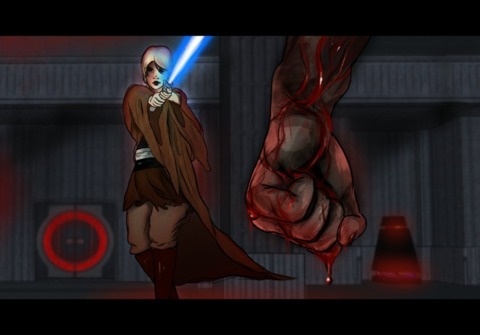 Мечи бойцов двигались на невероятной скорости. Арклея с трудом успевает увернуться от удара, и джедай срубает прядь волос и кусок металла брони. Меч парня слегка поверхностно задевает по коже Арклеи. Ситх все-таки выворачивается, не давая сильнее ранить себя. Арклея успевает отметить полёт кусочка металла её доспехов и нанести по нему удар ногой. Обрубок превращается в снаряд, что уносится в сторону джедая. Арклея использует момент, когда один из джедаев отвлекся, и атакует другого. Быстрая связка ударов - парень открылся, не поспевая за ней. Арклея уже буквально видит, как мгновенно из светлой стороны силы соткалась защита на груди парня. Как сзади нее спешит его товарищ. Арклея резко разворачивается на пятках. Ногой бьёт в защиту, используя её как опору, срывается вперёд. Спешивший напасть на неё парень пытается рубануть ударом. Арклея проскальзывает под его мечом. Останавливается и ударяет в спину. Джедай не успевает защититься. Перед Арклеей падают две половинки врага. Ситх использует заминку и ищет глазами третьего врага. Она вдалеке. Ситх бросается в атаку на мечника. Вот она снова опережает по скорости джедая. Он открылся. Снова защита из силы. Ситх опять не атакует и срывается в стремительную атаку на девушку. Парень мчится ей помешать. Арклея выбирает момент и разворачивается, атакует парня. Тот немного не успевает за сменой действия. Удар в сердце. Второй джедай мертв.