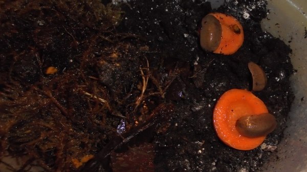 Теперь немного о содержании Тинкт. Контейнер на 40 литров, грунт - нейтрализованный верховой торф. На грунт укладываем листовой ( в нашем случае дубовый) опад и мох сфагнум. Температура необходима относительно невысокая, 24 - 26 градусов. При более высоких температурах улитки уже чувствуют себя нехорошо. Влажность 60 - 80%, прочитали, что любят высокую. Из еды пока положили яблоко и морковь, вечером дадим тыкву. Кальций необходим в свободном доступе, белок дается регулярно.
