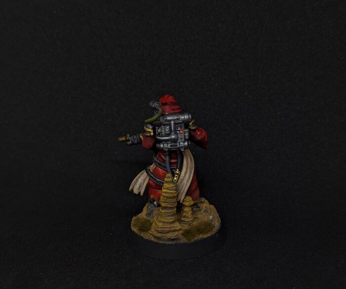Под бронёй она была облучённым пехотинцем Машинного бога. Её кожа, тёмно-коричневая от рождения и ничем не отличающаяся от кожи Энварика, посерела от голода и отсутствия солнца. Её ритуально лишили конечностей, заменив руками и ногами недорогой кибернетической чистоты. К её чести, служительница Омниссии достигла такой благодати в мехаморфозе, что теперь доля святого железа в её теле превосходила остатки несовершенной плоти.