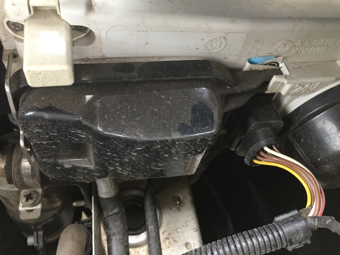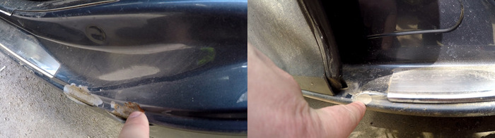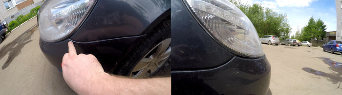 Осматривая более внимательно крепления бампера обнаруживаем, что он сместился и немного деформировался по краям. От соприкосновения(возможно и в пробке, хозяин уклончиво отвечает) не прошло бесследно для этой машины. Ну что же идем дальше и видим вот такую картину, а машина 2009 года не старая однако.