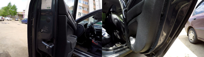 Обращайте внимание на вот такие наклейки( слева) там частенько идет дата и пробег когда было обслуживание. Это частенько может Вам дать намек смотан ли пробег или все таки нет. А так же присмотритесь на дверные карты дверей на стыке карты двери и самой двери имеет материал Антискрипа. Видимо владелец заморочился избавлением от скрипов салона.