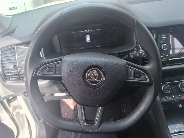 Особого внимания заслуживает блок климатической системы. Если у Тигуана он сенсорный (две полоски под монитором на передней панели), то эргономисты Шкоды подошли к этому вопросу более взвешенно и сохранили вращающиеся рукоятки, в них встроены небольшие экранчики. Центральная крутилка имеет сразу несколько разных функций (скорость вентилятора, громкость аудиосистемы, режимы мехатронного шасси и др.), а боковые отвечают за температуру воздуха и подогрев/вентиляцию сиденья. Для перехода между функциями нужно нажать на саму рукоятку и держать в течение пары секунд. На руле также нет никаких сенсоров. Круиз-контроль, как и раньше, управляется с отдельного рычажка на рулевой колонке.