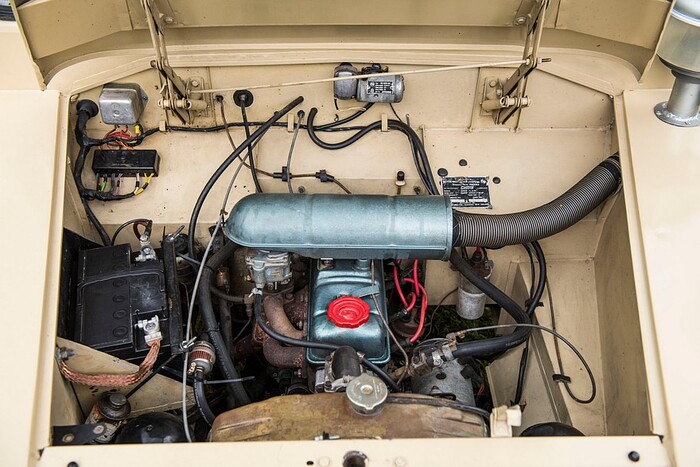 Двигатель установили вполне традиционно, то есть спереди и продольно. Этот четырехцилиндровый верхнеклапанный мотор объемом 1,2 л развивал 46 л.с. при 4500 об/мин, то есть был довольно высокооборотным.