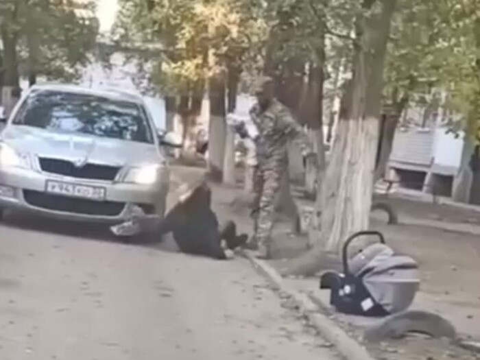 На выложенных кадрах россиянин в военной форме сперва кричит на автора видео, требуя от того уехать и угрожая ему насилием, затем супруга военнослужащего сама вступает в конфликт с мужем. После нескольких фраз он забирает ребенка из рук женщины, и та наносит несколько ударов по автомобилю военного. В ответ боец «Ахмата» хватает жену за шиворот и швыряет на землю, при этом россиянка бьется головой о машину. Военный продолжает избиение и сначала наносит около шести ударов ногой в голову россиянке, а после продолжает ее пинать в верхнюю часть корпуса. Бесчувственную жену он за волосы отволок к обочине и бросил головой о бордюр.