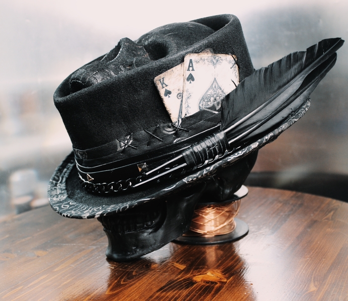 Обьёмная бронзовая пряга, кулак с черепами на костяшках. На обороте геральдическая лента с девизом "Бей первым"