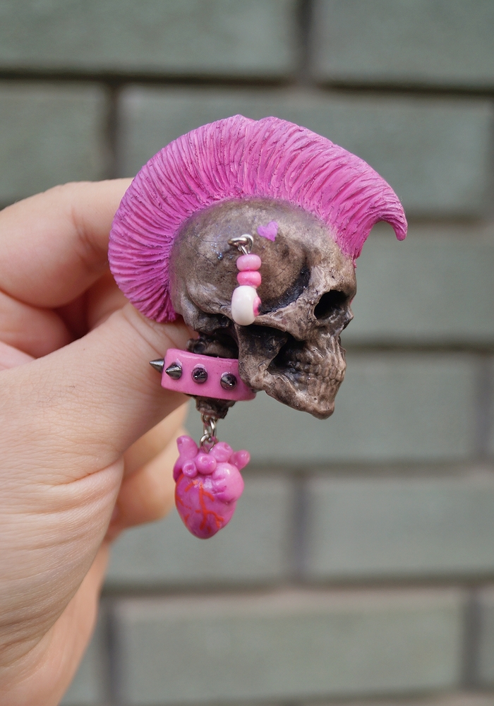С глазиком- сережкой , вкрученным на "саморез" в череп вместо ушка)))