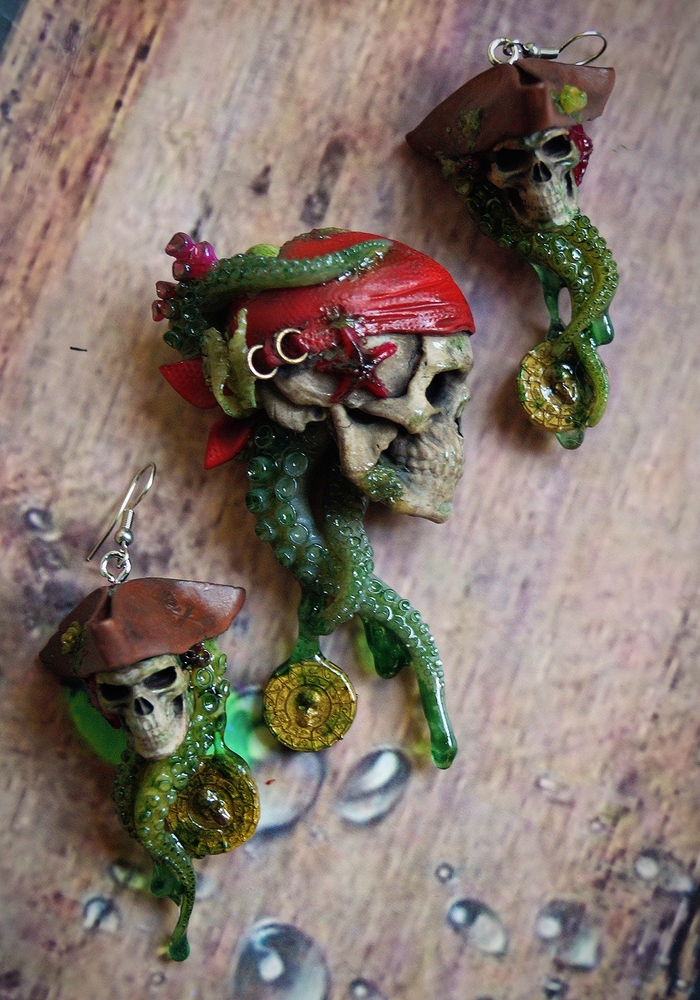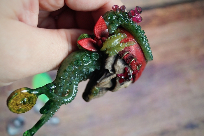 Материал: полимерная глина, сухая пастель, низкотемпературная эмаль, витражная краска, лак, фурнитура