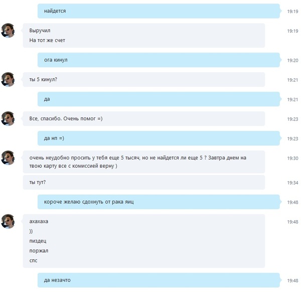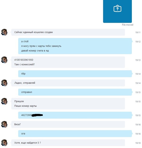 З.Ы. В сообщениях был указан 16-и значный номер карты, на которую нужно было отправить деньги. Но когда я скрины делал, сообщение было уже подправлено. Оказывается, скайп позволяет редактировать собственные сообщения!!!