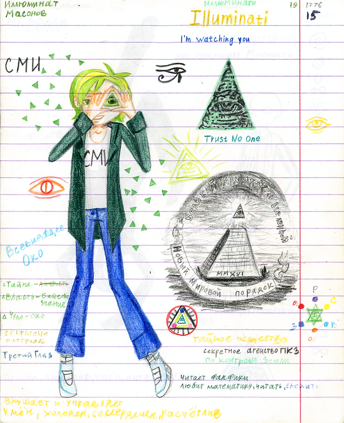 А всё как всегда начиналось с баловства. У меня почти всегда так с гениальными идеями. Мы рисовали на Мультаторе всякую всячину, прикалывались. И я придумала и нарисовала беглую хуманизацию иллюмината. Как в современном стиле, тогда ещё про иллюмината читала, что это какой-то масон. Не знаю, кто он, уже не помню мотивы. То ли одарённый подросток, то ли особое существо, рождённое с появления этого масонства. Допустим, просто могущественное существо, которое по возрасту, как подросток.