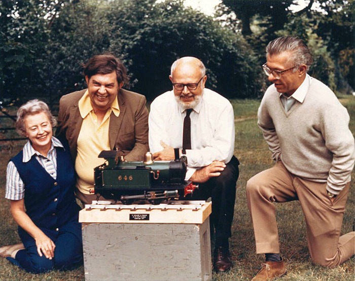 В 1971 году великолепная четверка B2FH собралась на 60-ю годовщину Уильяма Фаулера (он второй справа). Друзья сделали ему подарок — модель паровоза.
