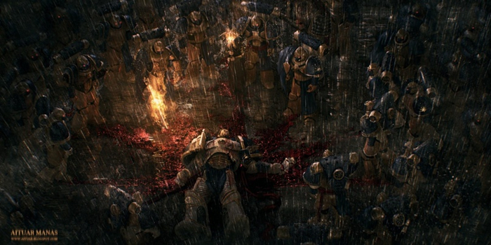 Лунные Волки тогда бились плечом к плечу с Имперскими Кулаками. Мы не знаем, сколько длилась кампания, но известно, что оба легиона понесли доселе немыслимые потери. Причём лухманцы продолжали бороться даже после того, как их основные силы были разбиты, а лидеры казнены. Именно во время этих карательных зачисток Сыновья Дорна и Хоруса потеряли немало боевых братьев.