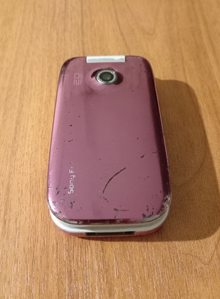Среди продавцов раритетных телефонов перекупы, обычно, делятся на несколько категорий. Расположенные в самом низу по иерархии перекупы, называемые в народе "барахольщики" скупают почти всё подряд, чтобы с небольшой наценкой продать купленное. Чаще всего их можно заметить, продающих телефоны лотом и под запчасти. И вот среди одного из таких заприметил я раритетную раскладушку Sony Ericsson в необычном розовом цвете. Телефон уже, видимо, после 10-х рук и 20-х ног. Несмотря на видавшую виды внешность и на первый взгляд отсутствие хоть каких-то признаков жизни, телефон Sony Ericsson даже запустился. Чаще всего такие телефоны неглядя отправляют на запчасти и разбирают, чтобы дополнить деталями другие телефоны, которые выглядят "посвежее"