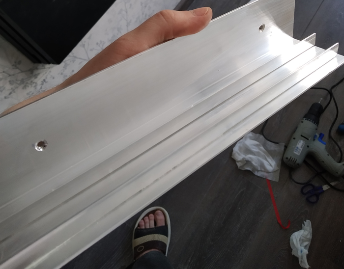 Так же потребуется двусторонняя клейкая лента и 4 дюбеля, это тоже есть в леруа. Из инструмента нужны дрель и ножовка по металлу или болгарка.