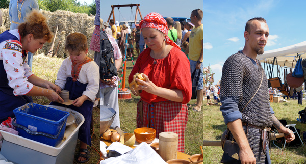 На прилавках было многое: и куклы, и амулеты, и оружие для детей, и для взрослых тоже, и мёд в сотах (очень вкусный), и яйца-писанки, и всякое другое (вы рассмотрите тут и там на фото)