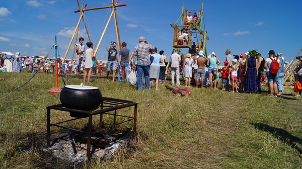Было два способа поесть: это пройти к длинным стендам с едой из разных сетей ресторанов и кафе (те же, что были на Малине) и небольшим палаточкам поближе к входу, которые предлагали каши, супы, шашлыки, компот и другие более традиционные кушанья, которые готовили прямо там, в котле над костром.
