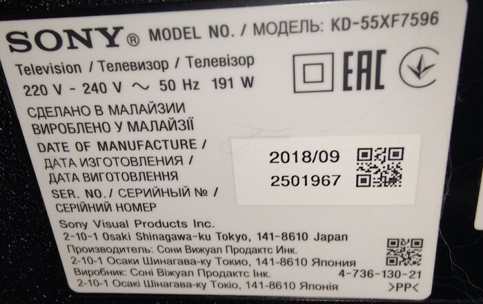 Прошу помощи с проблемой на телевизоре SONY модель KD-55XF7596