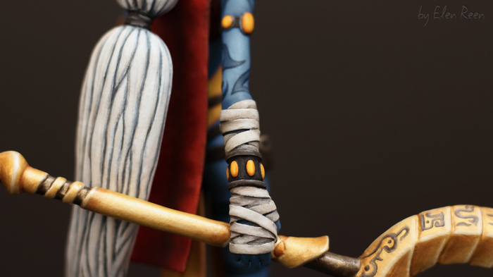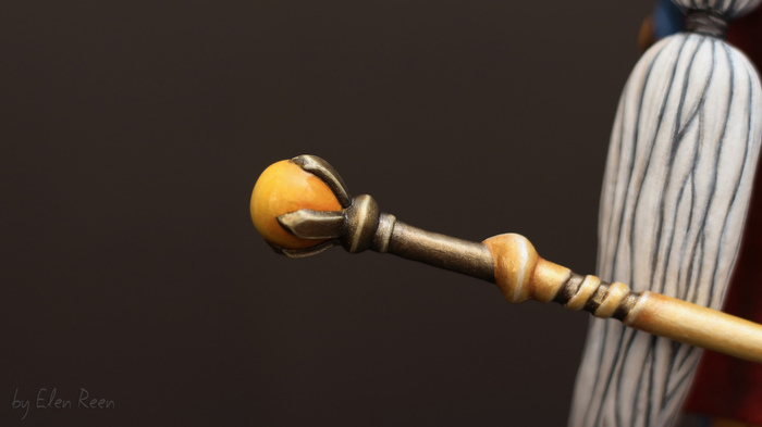 Руны на посохе сначала пробовала наносить маркером, но потом решила переделать.